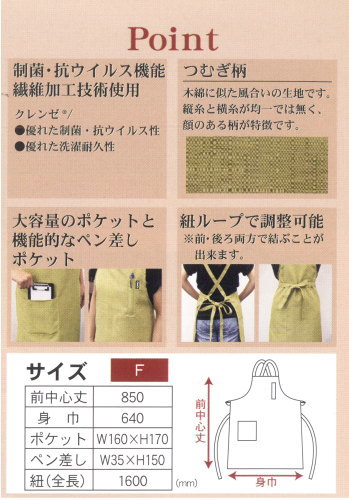 制菌加工/抗ウイルス加工 Aprio国産エプロン男女兼用